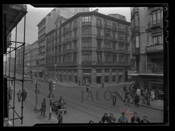En la fotografía se aprecian muchos detalles: multitud de negocios (Almacenes Modernos, Joyería El Trust, Fincas Pinilla, el Hotel Oriente, Drogas Alfonso...); el Conservatorio Profesional de Música; un enorme letrero que publicitaba el Fósforo Ferrero, un tónico nervioso y reconstituyente...
