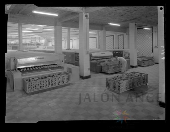 Visita a la Panificadora PEIPASA, en la calle Miguel Servet de Zaragoza. Se ve tanto a operarios como la maquinaria de la fábrica