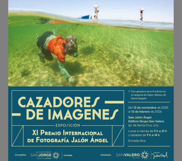 A partir del 12 de noviembre, la Sala Jalón Ángel presenta la undécima edición de la muestra «Cazadores de Imágenes». Se trata de una selección de las mejores fotografías enviadas al Premio Internacional Jalón Ángel en la convocatoria de 2025, además de las ganadoras y las menciones especiales de cada categoría. Este año, además de los géneros habituales (Retrato y Viajes), encontramos la categoría especial Sociedad inclusiva, con imágenes de personas que, independientemente de su condición física, sexual, intelectual, origen étnico o económico, o cualquier otra circunstancia personal agitada para alentar una injustificable discriminación, avanzan día a día por conseguir una plena integración social y realización personal.
