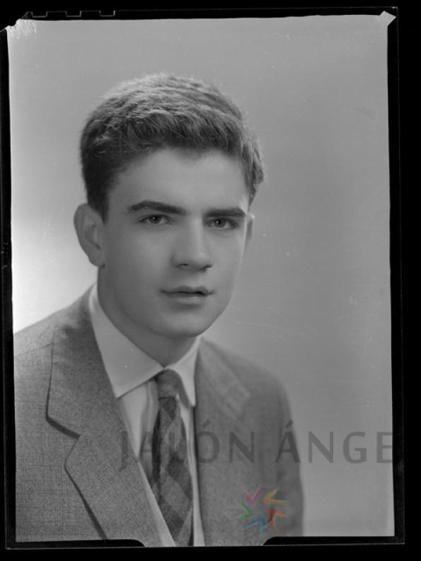 Retrato de estudio, hombre joven con americana y corbata, en blanco y negro