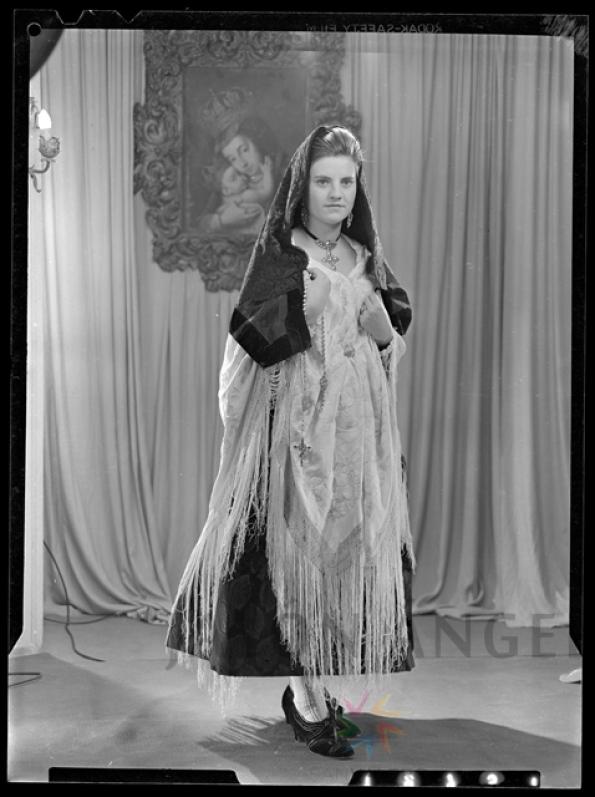 Retrato de estudio, en blanco y negro, de una baturra. Mª Gloria Comet
