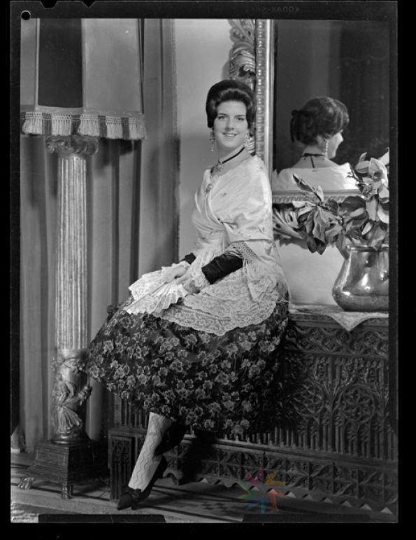 Retrato de estudio, en blanco y negro, de la Reina de las Fiestas de 1961, Mª Pilar Cano