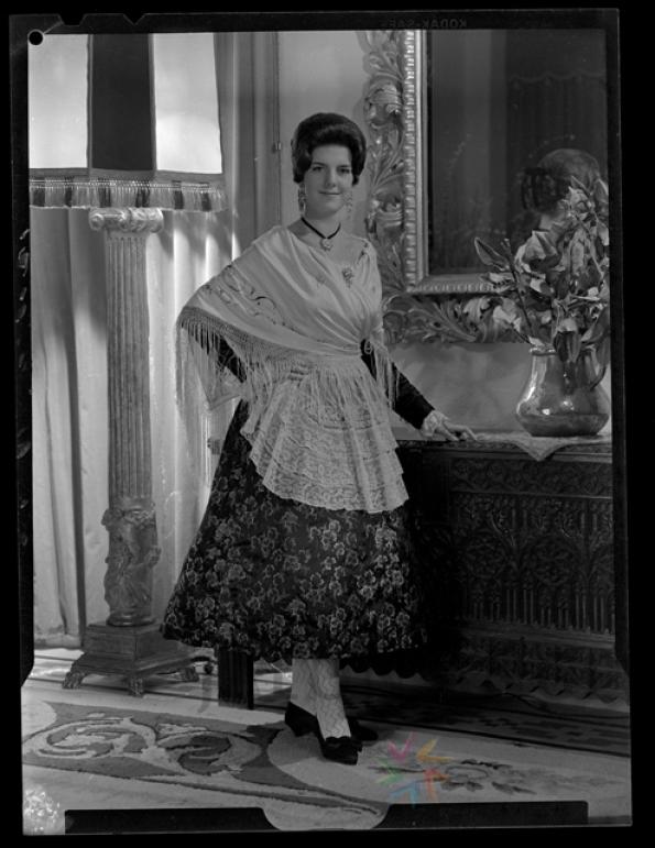 Retrato de estudio, en blanco y negro, de la Reina de las Fiestas de 1961, Mª Pilar Cano