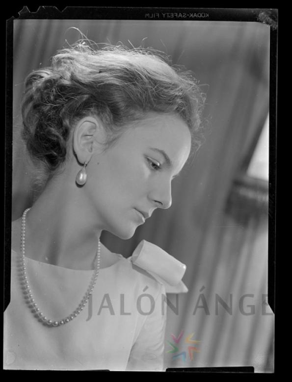 Retrato de estudio, en blanco y negro, de una joven novia. Señores de Mantecón