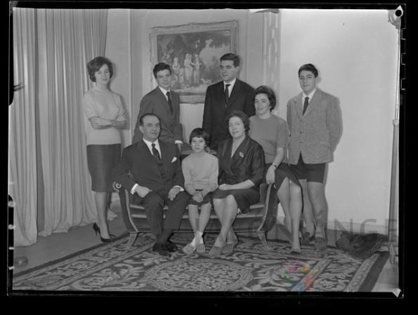 El empresario, político y presidente del Real Zaragoza, Cesáreo Alierta (1909-1974) y su esposa, Juana Izuel Labad, junto a sus 3 hijos: César Alierta (1945-2024), quien fue presidente de Telefónica; Mariano Alierta (1940), diputado por la UCD y senador por el Partido Popular; y de Juana Alierta, esposa de Ramón Sainz de Varanda, político socialista y alcalde de Zaragoza. Les acompañan otros familiares sin identificar