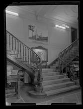 Jalón Ángel en el salón de casa con su mujer, Nieves de la Fuente, y cuatro de sus hijos. Jalón sentado, de perfil, en el reposabrazos de un sofá a la izquierda. En un tresillo en el centro, tres hijos. En un plano posterior, su hijo Ángel García de Jalón Comet. A la derecha, en otra butaca, Nieves. Suelo de terrazo rojo. Alfombra con un diseño geométrico. Al fondo, gran cortina amarilla.