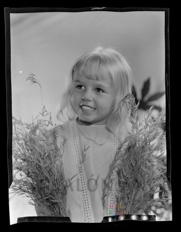 Retrato de estudio. El sobre identifica a la niña como hija de los señores Smith de la base aérea americana de Zaragoza