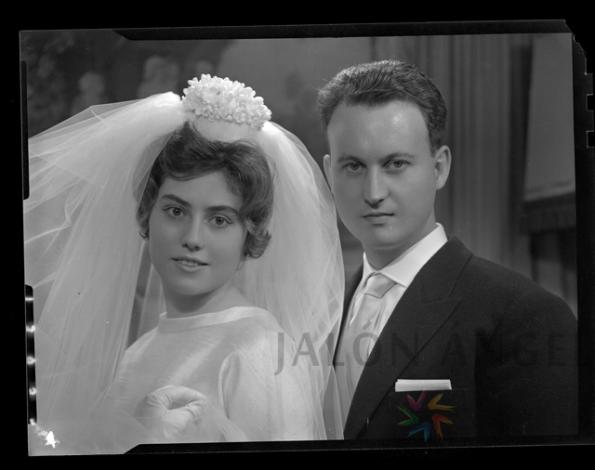 Retrato de estudio, pareja de novios, identificados como "señores de Nicolás"